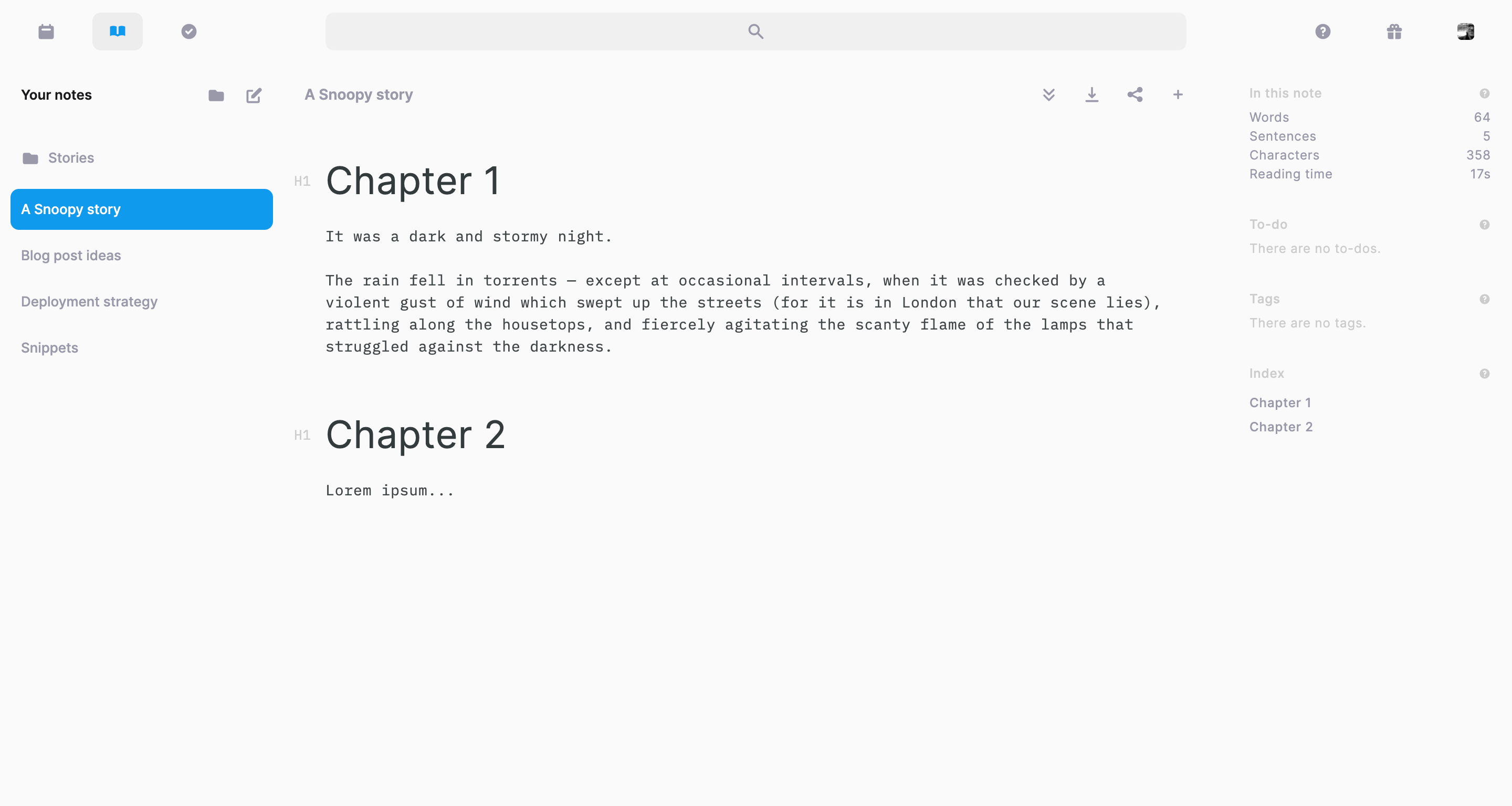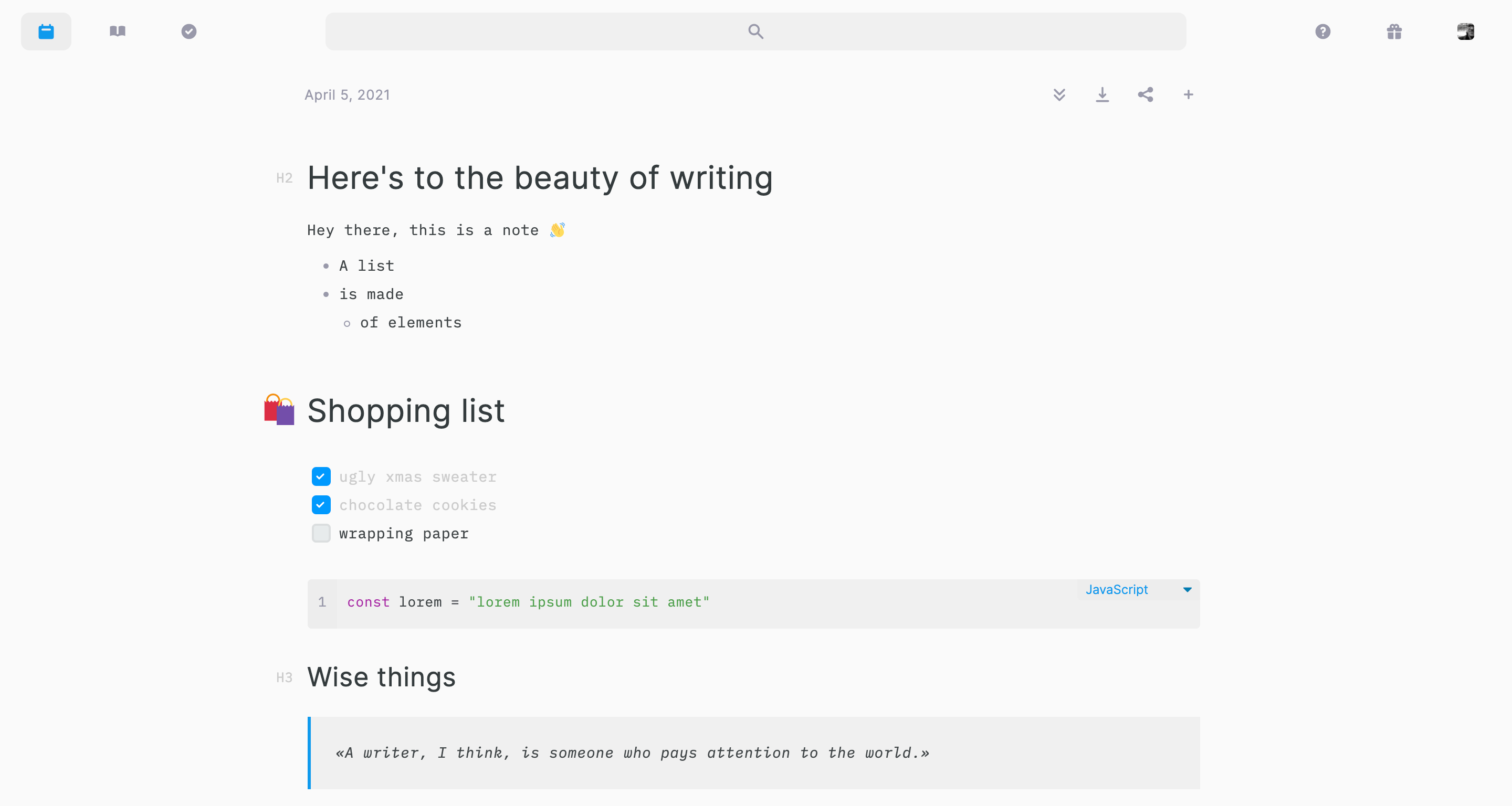 The notebook is the place for standalone, free notes for your ideas, shopping lists, larger projects, and anything you want to keep written down.